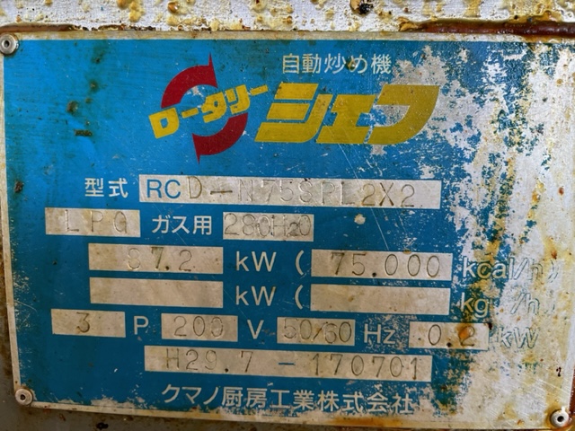 自動炒め機 『ロータリーシェフ“D” N75S型』 |