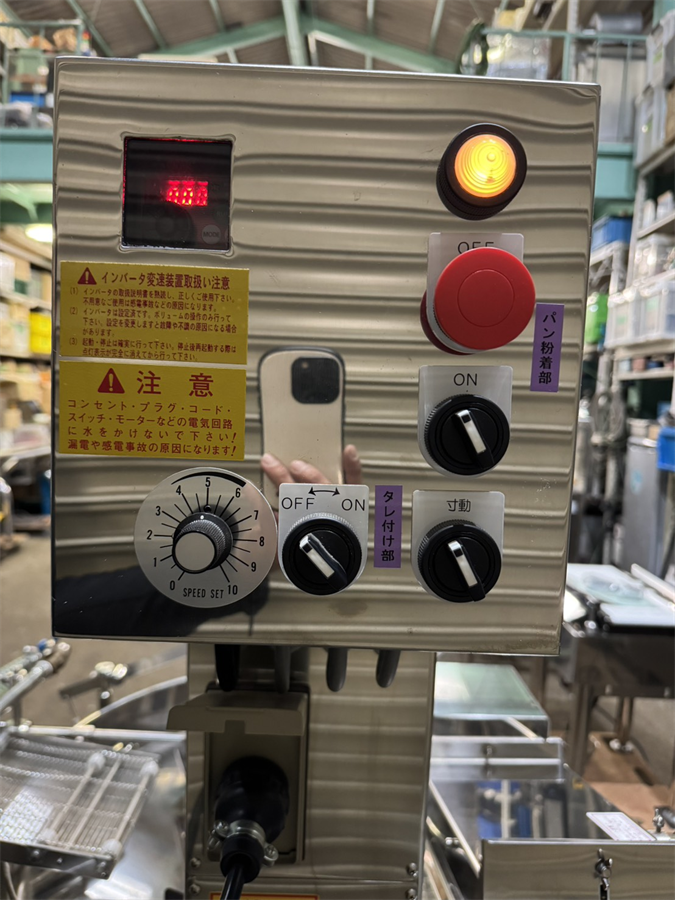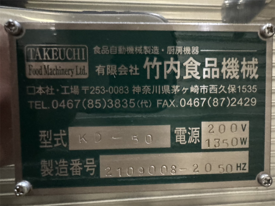 Topics, 売約済み物件 (有)竹内食品機械 タライ式全自動パン粉着機 KD-50/2021年製 お問合せ番号 Y-5244 品 名 タライ式全自動パン粉着機 型 式 KD-50 種 類 食品加工機器 食品加工機器関連 程 度 メーカー名 有限会社 竹内食品機械 年 式 2021年製 素 材 外 寸 W1300×D2100×H1600 付属機器 電 源 三相200V 金 額 売約済み 運 賃 保証期間 1ヶ月 備 考 ※未使用機 HOME | 中古機械情報 | 売約済み物件 | お問合せ (株)大道産業 フードミキサー OMX-50R-3/2021年製 2026/01/09 お買い上げ有難うございました。日本テクノロジーソリューション(株) 熱旋風式シュリンク装置 TORNADO /2013年製