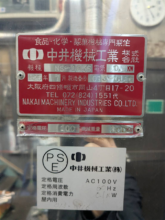 Topics, 売約済み物件 中井機械工業(株) スチーマーボックス NS-103S/2013年製 お問合せ番号 Y-5353 品 名 スチーマーボックス 型 式 NS-103S 種 類 加熱・冷却機器/加熱機器、製菓機器/その他 程 度 メーカー名 中井機械工業 株式会社 年 式 2013年製 素 材 外 寸 W930×D1000×H2100(㎜) 付属機器 電 源 金 額 売約済み 運 賃 保証期間 1ヶ月 備 考 ・重量:300㎏ ・庫内寸法:W550×D750×H1500(㎜) HOME | 中古機械情報 | 売約済み物件 | お問合せ (株)大栄製作所 遠心分離機 DT-2SA型22吋/2014年製 (株)マグネテックジャパン マグネットトラップ SDK7065009/2017年製