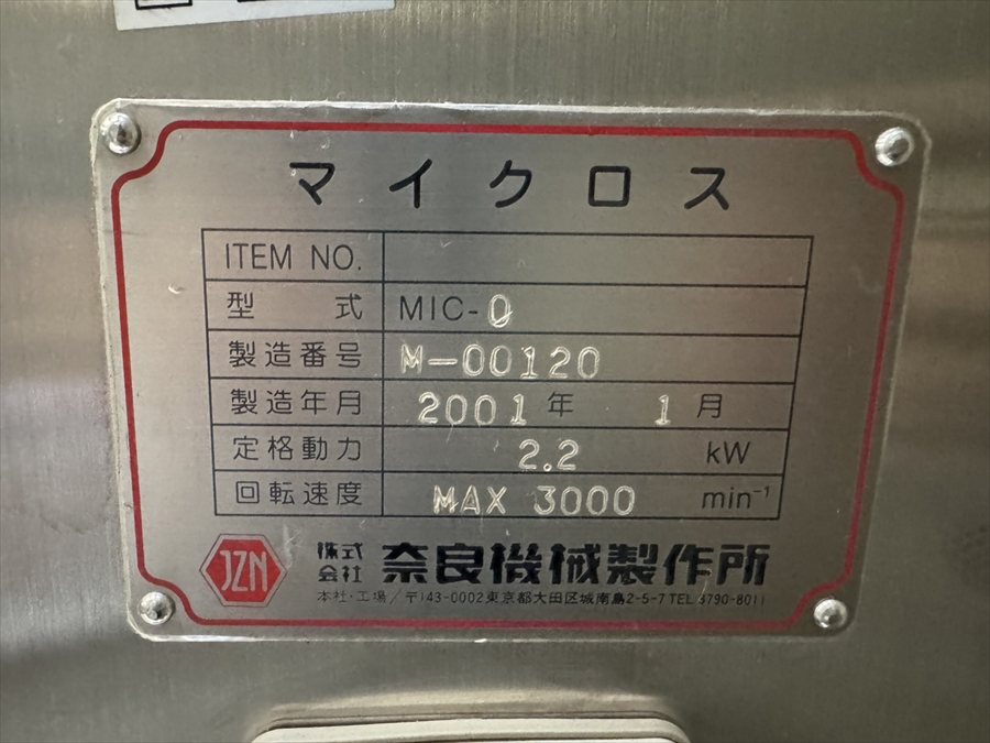 Topics, 売約済み物件 (株)奈良機械製作所 湿式超微粉砕機 マイクロス MIC-0/2001年製 お問合せ番号 Y-5929 品 名 湿式超微粉砕機 マイクロス 型 式 MIC-0 種 類 食品加工機器 製薬機器 程 度 メーカー名 株式会社 奈良機械製作所 年 式 2001年製 外 寸 付属機器 電 源 金 額 売約済み 運 賃 保証期間 1ヶ月 保管場所 備 考 粉砕部有効容積:0.4L HOME | 中古機械情報 | 売約済み物件 | お問合せ アンドレ・ザルキン社 半自動キャッパー TM 3/2009年製 (株)ミカワ電機製作所 小型解砕機 81SFM/2013年製