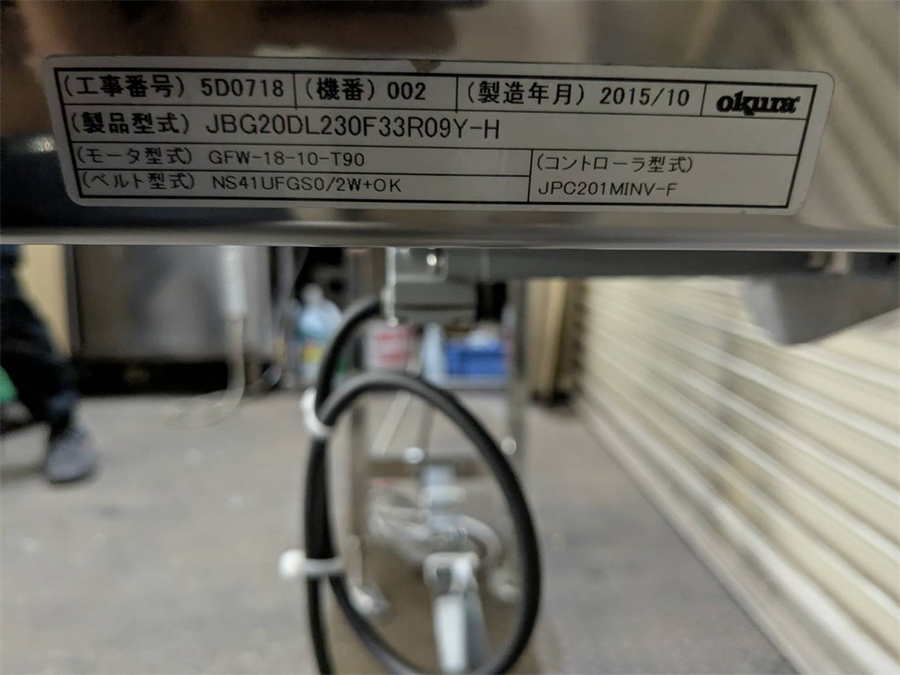 Topics, 売約済み物件 オークラ輸送機(株) ベルトコンベヤ① ジャブコン/2015年製 お問合せ番号 Y-5965 品 名 ベルトコンベヤ ジャブコン 型 式 JBG20DL230F33R09Y-H 種 類 コンベアー等 コンベアー 程 度 メーカー名 オークラ輸送機 株式会社 年 式 2015年製 外 寸 付属機器 電 源 単相200V 金 額 売約済み 運 賃 保証期間 1ヶ月 保管場所 加西倉庫 備 考 ・ベルト幅:200(㎜) HOME | 中古機械情報 | 売約済み物件 | お問合せ ステンレスコンベアー 150×700L /2008年製 オークラ輸送機(株) ベルトコンベヤ② ジャブコン/2015年製