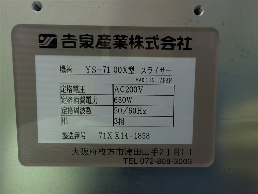 中古機械情報, 各種スライサー, 各種スライサー等 吉泉産業(株) 高速スライサー YS-7100X/2018年製 お問合せ番号 Y-6118 品 名 高速スライサー 型 式 YS-7100X 種 類 各種スライサー等 各種スライサー 程 度 メーカー名 吉泉産業 株式会社 年 式 2018年製 外 寸 W885 ×L2935 × H1549 付属機器 電 源 三相200V 金 額 お問合せ下さい 運 賃 お問合せ下さい 保証期間 1ヶ月 保管場所 加西倉庫 備 考 ・カット寸法:1~80(㎜) ・投入寸法:W200、H130(㎜) HOME | 中古機械情報 | 売約済み物件 | お問合せ 吉泉産業(株) 大型角切りスライサー YS-7810X/2013年製 (株)豊田自動織機 3t フォークリフトトラック 7FBR30/2003年製