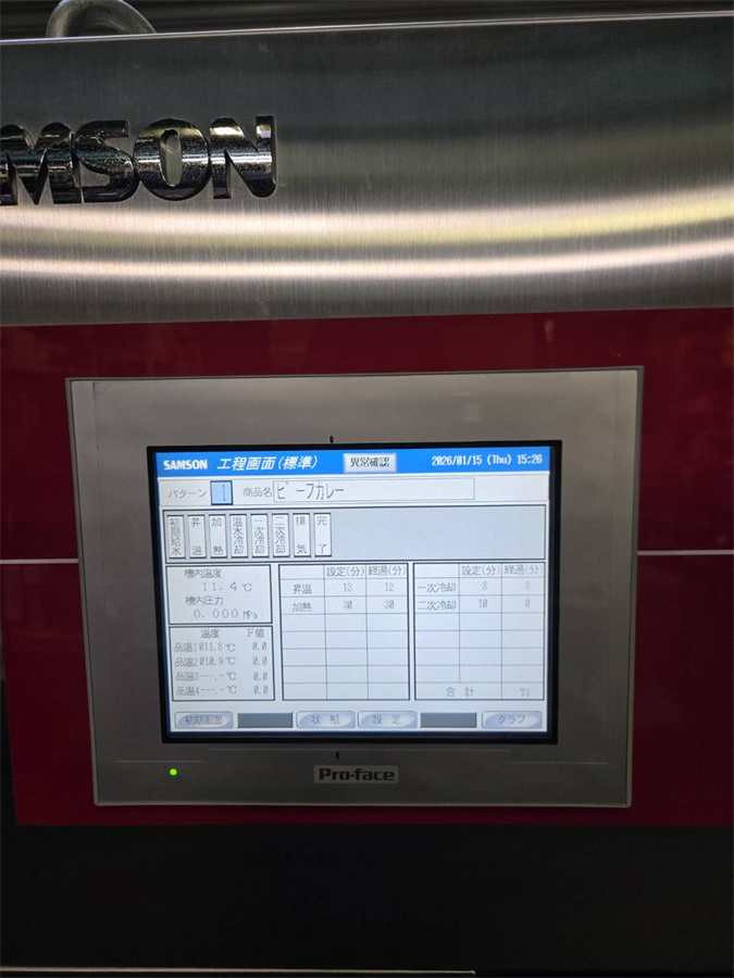 Topics, 売約済み物件 2025/11/06 お買い上げ有難うございました。(株)サムソン レトルト殺菌装置「Cook Boy」CB-40/2017年製 お問合せ番号 Y-6044 品 名 レトルト殺菌装置「Cook Boy」 型 式 CB-40 種 類 加熱・冷却機器 殺菌装置 程 度 メーカー名 株式会社 サムソン 年 式 2017年製 外 寸 付属機器 電 源 金 額 売約済み 運 賃 保証期間 1ヶ月 保管場所 加西倉庫 備 考 最高使用圧力:0.3 Mpa HOME | 中古機械情報 | 売約済み物件 | お問合せ Sydelmann社 サイレントカッター K60U/2011年製 (株)カントー 電動油圧式リフト① エルダ 5025-OP