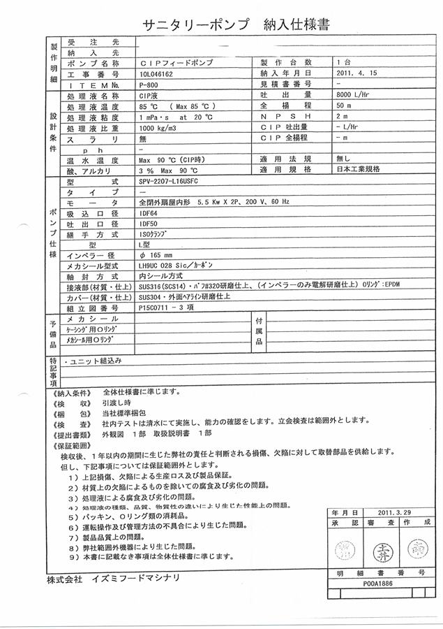 その他, 中古機械情報, 食品関連機器 (株)イズミフードマシナリ 温水ユニット T1VRF-1DX-100L/2011年製 お問合せ番号 Y-6213 品 名 温水ユニット 型 式 T1VRF-1DX-100L 種 類 食品関連機器 その他 程 度 メーカー名 株式会社 イズミフードマシナリ 年 式 2011年製 外 寸 付属機器 電 源 金 額 お問合せ下さい 運 賃 お問合せ下さい 保証期間 1ヶ月 保管場所 加西倉庫 備 考 ・容量:100(L) ※制御盤は付帯しません HOME | 中古機械情報 | 売約済み物件 | お問合せ アルファラバル(株) ロータリーポンプ③ OPTILOBE 22/2011年製 (株)イズミフードマシナリ サニタリータンク T1VRF-1DX-400L/2011年製