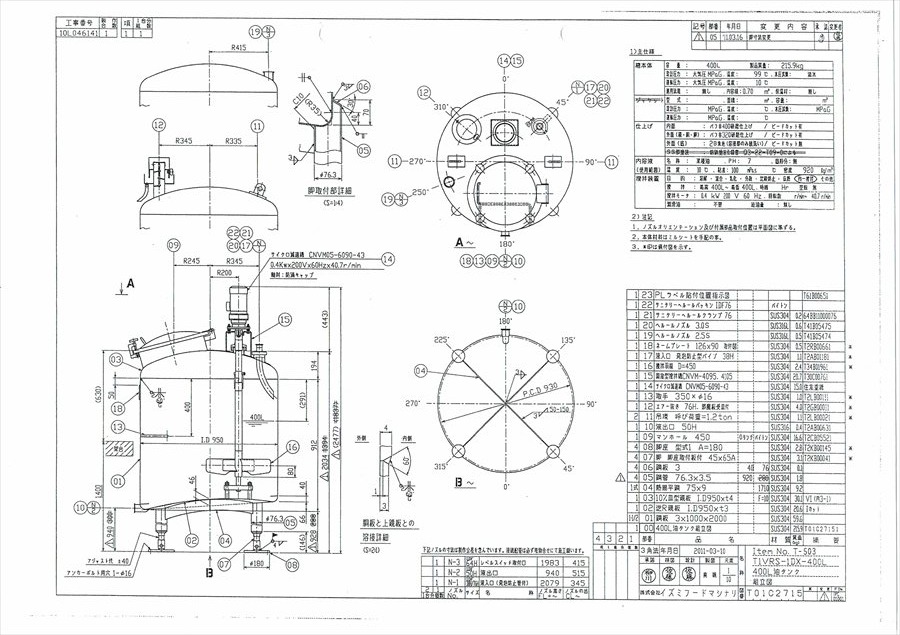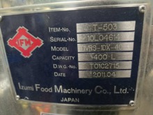 タンク類, 中古機械情報, 食品関連機器 (株)イズミフードマシナリ サニタリータンク T1VRF-1DX-400L/2011年製 LEAD Technologies Inc. V1.01 お問合せ番号 Y-6214 品 名 サニタリータンク 型 式 T1VRF-1DX-400L 種 類 食品関連機器 タンク類 程 度 メーカー名 株式会社 イズミフードマシナリ 年 式 2011年製 外 寸 付属機器 電 源 金 額 お問合せ下さい 運 賃 お問合せ下さい 保証期間 1ヶ月 保管場所 加西倉庫 備 考 ・容量:400(L) HOME | 中古機械情報 | 売約済み物件 | お問合せ (株)イズミフードマシナリ 温水ユニット T1VRF-1DX-100L/2011年製 (株)イズミフードマシナリ ジャケット付き撹拌タンク① T3VRC-1DT-600L/2011年製