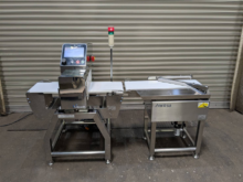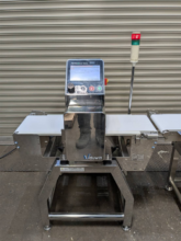 ・金検重量:102(㎏) ・通過高:75(㎜) ・金検ベルトサイズ :巾230×長さ800、ベルト高840(㎜) ・リジェクター ベルトサイズ:巾220×長さ700(㎜) ※ テストピース :Feφ0.8、SUSφ1.0(テストピースは含みません) |