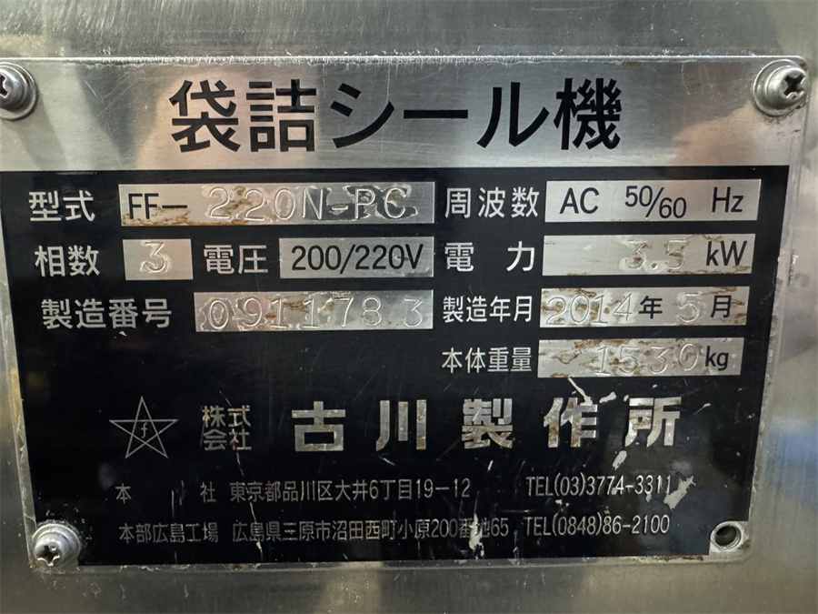 (株)古川製作所 袋詰シール機 FF-220N-PC/2014年製