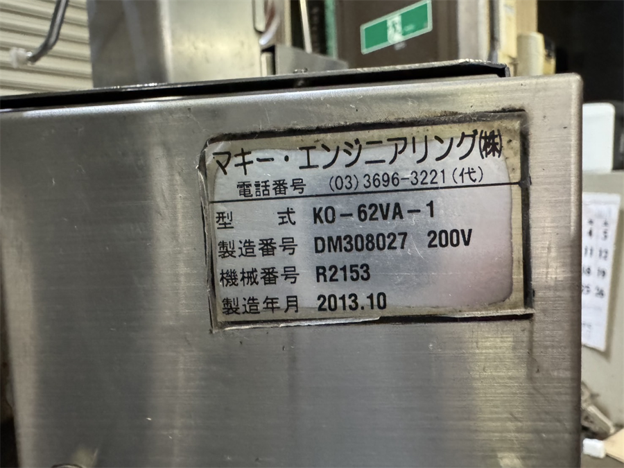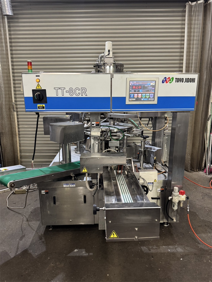Topics, 売約済み物件 2025/11/14 お買い上げ有難うございました。東洋自動機(株) 給袋式自動充填包装機 TT-8CR/2014年製 お問合せ番号 Y-6291 品 名 給袋式自動充填包装機 型 式 TT-8CR 種 類 包装・梱包機器 包装機器関連 程 度 メーカー名 東洋自動機 株式会社 年 式 2014年製 外 寸 W1954×D2675×H1680(㎜) 付属機器 電 源 3相200V 50/60 Hz 金 額 売約済み 運 賃 保証期間 1ヶ月 保管場所 加西倉庫 備 考 ・重量:1600(㎏) ・包装能力:15~30袋/分 ※ウェット製品向け HOME | 中古機械情報 | 売約済み物件 | お問合せ 三光機械(株) 自動充填包装機 SAM-FP300/2007年製 (株)アビー セルアライブ装置+急速凍結庫 エアブラスト式/2020年製