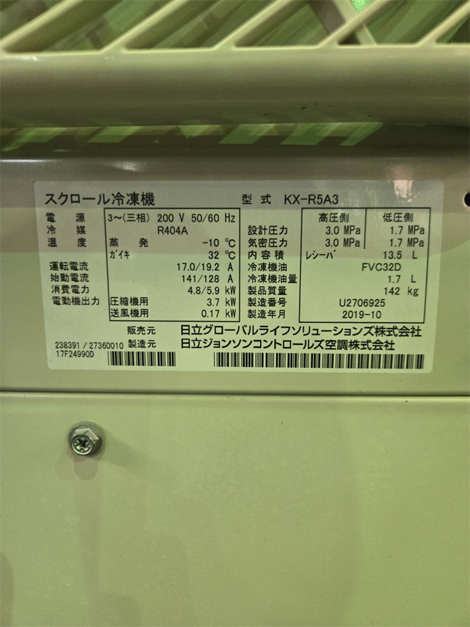 中古機械情報, 冷却機器, 加熱・冷却機器 (株)アビー セルアライブ装置+急速凍結庫 エアブラスト式/2020年製 お問合せ番号 Y-6394 品 名 セルアライブ装置+急速凍結庫 型 式 エアブラスト式 種 類 加熱・冷却機器 冷却機器 程 度 メーカー名 株式会社 アビー 年 式 2020年製 外 寸 W1150×D1240×H1520(㎜) 付属機器 日立ジョンソンコントロールズ空調(株)…屋外設置型スクロール冷凍機 電 源 金 額 お問合せ下さい 運 賃 お問合せ下さい 保証期間 1ヶ月 保管場所 加西倉庫 備 考 HOME | 中古機械情報 | 売約済み物件 | お問合せ (株)イシダ コンピュータースケール CCW-R2-107PS-S/02-SS-X/2023年製 (株)明和エンジニアーズ 固定オーブン MSC-23W PM/2016年製(2022年 再生)