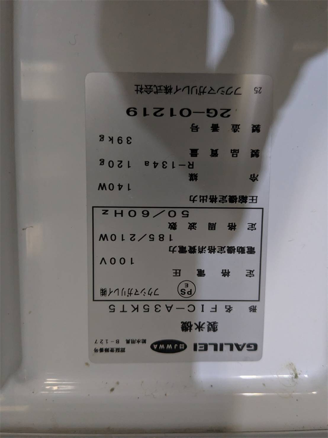 ・能力:32~36 ㎏/日(室温20℃・水温15℃)