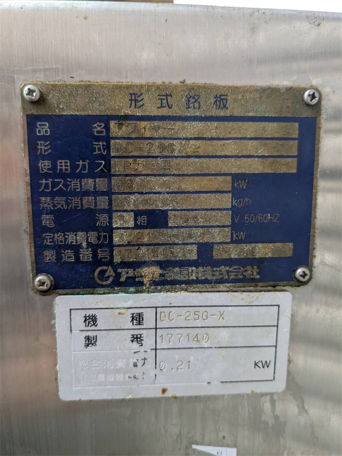 中古機械情報, 加熱・冷却機器, 加熱機器 アサヒ装設(株) フライヤー DC-25G/2017年製 お問合せ番号 Y-6398 品 名 フライヤー(製造番号:177140) 型 式 DC-25G 種 類 加熱・冷却機器 加熱機器 程 度 メーカー名 アサヒ装設 株式会社 年 式 2017年製 外 寸 付属機器 電 源 3相200V 50/60 Hz 金 額 お問合せ下さい 運 賃 お問合せ下さい 保証期間 1ヶ月 保管場所 加西倉庫 備 考 ※LPガス用 HOME | 中古機械情報 | 売約済み物件 | お問合せ 広栄機工(株) 特殊仕様除水機/2011年製 マイコック産業(株) 自動パン粉付け機 FINE-3600-FB/2018年製