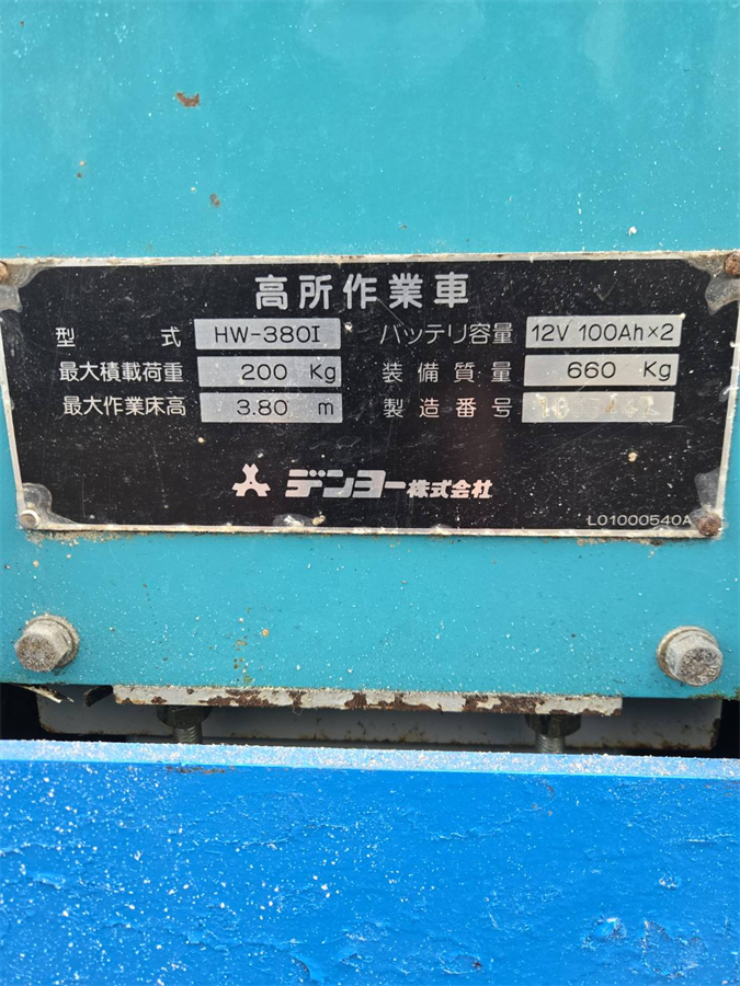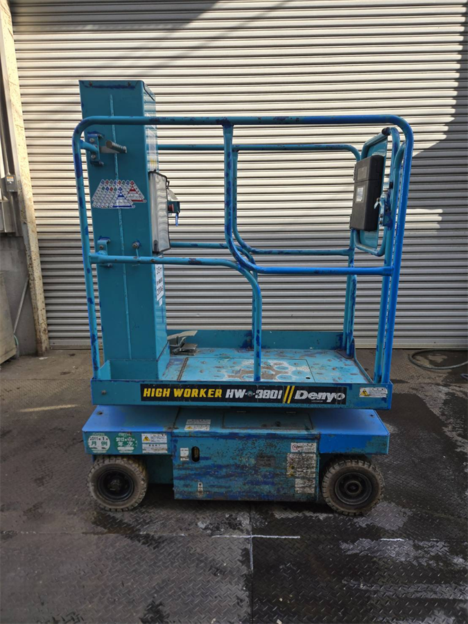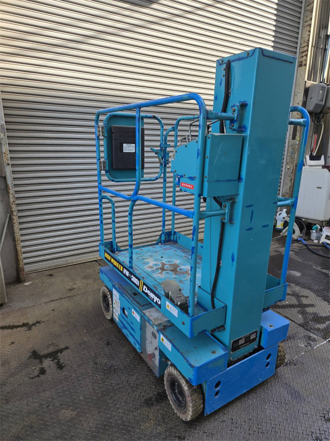 中古機械情報, 特選機器・商品情報 デンヨー(株) 高所作業車 HW-380I/2011年製 お問合せ番号 特選機器・商品情報 品 名 高所作業車(マストタイプ) 型 式 HW-380I 種 類 程 度 メーカー名 デンヨー 株式会社 年 式 2011年製 外 寸 W788×L1410×H1810(㎜) 付属機器 電 源 金 額 お問合せ下さい 運 賃 お問合せ下さい 保証期間 1ヶ月 保管場所 備 考 ・重量:730(㎏) ・作業床最大積載荷重:200(㎏) ・最高作業床高:3.86(m) ※最大20°傾斜地まで登板可能 HOME | 中古機械情報 | 売約済み物件 | お問合せ SUS製バケットリフト/2005年製 (有)大和技研 自動計量機・搬送機 DTS-200S/2016年製