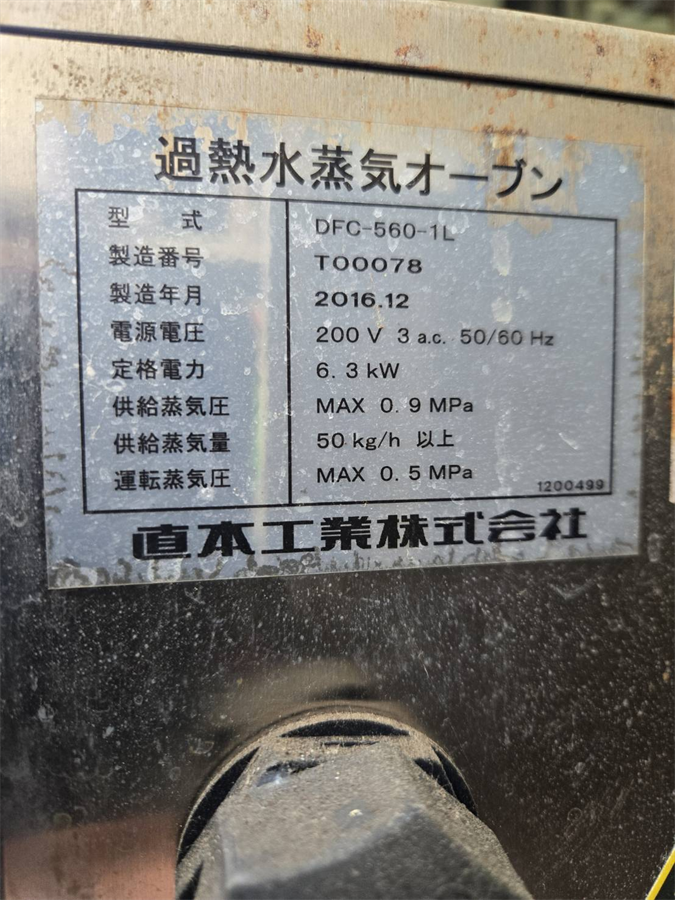 中古機械情報, 特選機器・商品情報 直本工業(株) 過熱水蒸気オーブン DFC-560-1L/2016年製 お問合せ番号 特選機器・商品情報 品 名 過熱水蒸気オーブン「エアロスチームオーブン」 型 式 DFC-560-1L 種 類 程 度 メーカー名 直本工業 株式会社 年 式 2016年製 外 寸 付属機器 電 源 3相200V 50/60 Hz 金 額 お問合せ下さい 運 賃 お問合せ下さい 保証期間 1ヶ月 保管場所 備 考 ・通過幅:500(㎜) ・通過高:70(㎜) HOME | 中古機械情報 | 売約済み物件 | お問合せ 2025/11/28 お買上げ有難うございました。細田工業(株) ブランチング槽(ボイル槽)/2014年製 兵神装備(株) モーノポンプ 2NBLS40PUX11/2014年製