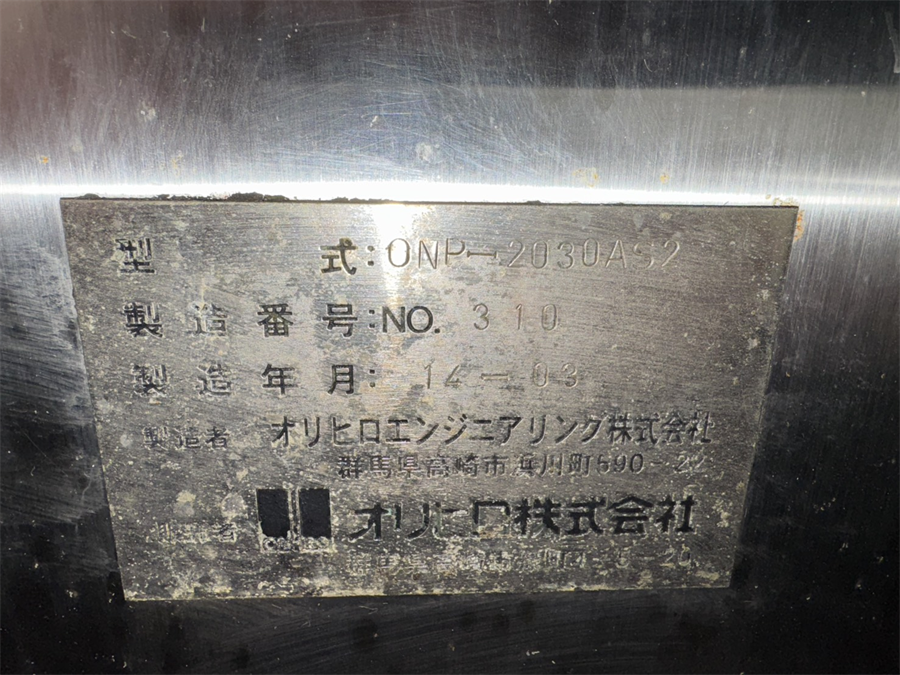 中古機械情報, 包装・梱包機器, 包装機器関連 オリヒロ(株) 縦ピロー包装機 ONP-2030AS2/2014年製 お問合せ番号 Y-6442-① 品 名 縦ピロー包装機 型 式 ONP-2030AS2 種 類 包装・梱包機器 包装機器関連 程 度 メーカー名 オリヒロ 株式会社 年 式 2014年製 外 寸 W1000×D1583×H1625(㎜) 付属機器 電 源 金 額 売約済み 運 賃 保証期間 1ヶ月 保管場所 加西倉庫 備 考 HOME | 中古機械情報 | 売約済み物件 | お問合せ 兵神装備(株) モーノポンプ 2NBLS40PUX11/2014年製 フロイント産業(株) 複合型造粒装置「スパイラフロー」 SFC-MINI/2015年製