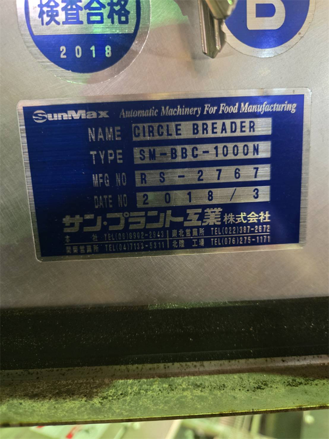 中古機械情報, 特選機器・商品情報 サン・プラント工業(株) パン粉付け機、粉付け機/2018年製 お問合せ番号 特選機器・商品情報 品 名 粉付け機 「プリダスティングマシン」 パン粉付け機「サイクルブレッダー」 型 式 【粉付け機】 SM-PDM200-1200 【パン粉付け機】SM-BBC-1000N 種 類 程 度 メーカー名 サン・プラント工業 株式会社 年 式 2018年製 外 寸 付属機器 電 源 金 額 お問合せ下さい 運 賃 お問合せ下さい 保証期間 1ヶ月 保管場所 備 考 HOME | 中古機械情報 | 売約済み物件 | お問合せ 不二精機(株) おむすび成形・包装ライン/2012年製