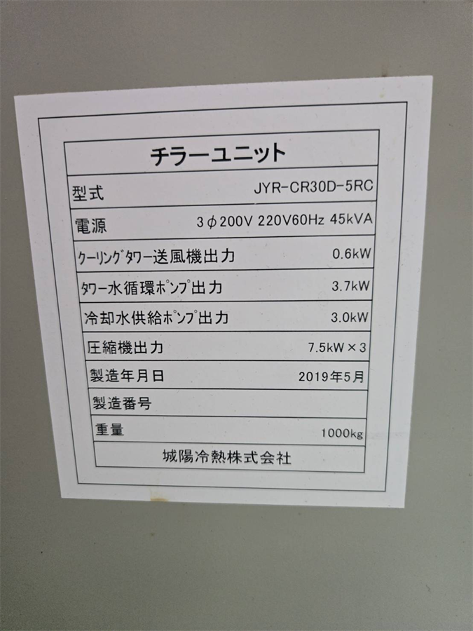 中古機械情報, 特選機器・商品情報 城陽冷熱(株) チラーユニット JYR-CR300-5RC/2019年製 お問合せ番号 特選機器・商品情報 品 名 チラーユニット 型 式 JYR-CR300-5RC 種 類 程 度 メーカー名 城陽冷熱 株式会社 年 式 2019年製 外 寸 付属機器 (株)ベルテクノ 耐震型タンク 電 源 3相200V 60 Hz 金 額 お問合せ下さい 運 賃 お問合せ下さい 保証期間 1ヶ月 保管場所 備 考 ・重量:1000(㎏) HOME | 中古機械情報 | 売約済み物件 | お問合せ ミネベアインテック デジタル台はかり /2019年製 ※2台 三浦工業(株) RO装置