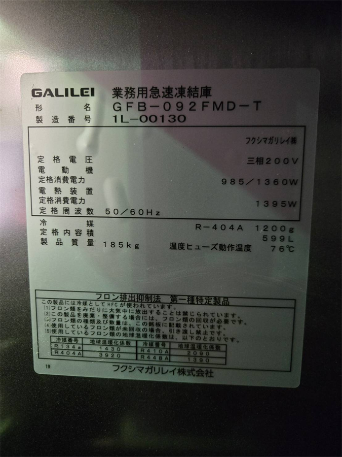 中古機械情報, 特選機器・商品情報 フクシマガリレイ(株) 急速凍結庫② GFB-092FMD-T/2022年製 お問合せ番号 特選機器・商品情報 品 名 急速凍結庫(No:1L-00130) 型 式 GFB-092FMD-T 種 類 程 度 メーカー名 フクシマガリレイ 株式会社 年 式 2022年製 外 寸 W900×D915×H2030(㎜) 付属機器 電 源 3相200V 金 額 お問合せ下さい 運 賃 お問合せ下さい 保証期間 1ヶ月 保管場所 備 考 ・質量 :160(㎏) ・内容積:590(L) HOME | 中古機械情報 | 売約済み物件 | お問合せ フクシマガリレイ(株) 急速凍結庫① GFB-092FMD-T/2022年製 フクシマガリレイ(株) 急速凍結庫③ GFB-092FMD-T/2022年製